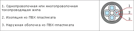 Конструкция кабельного изделия ВВГ